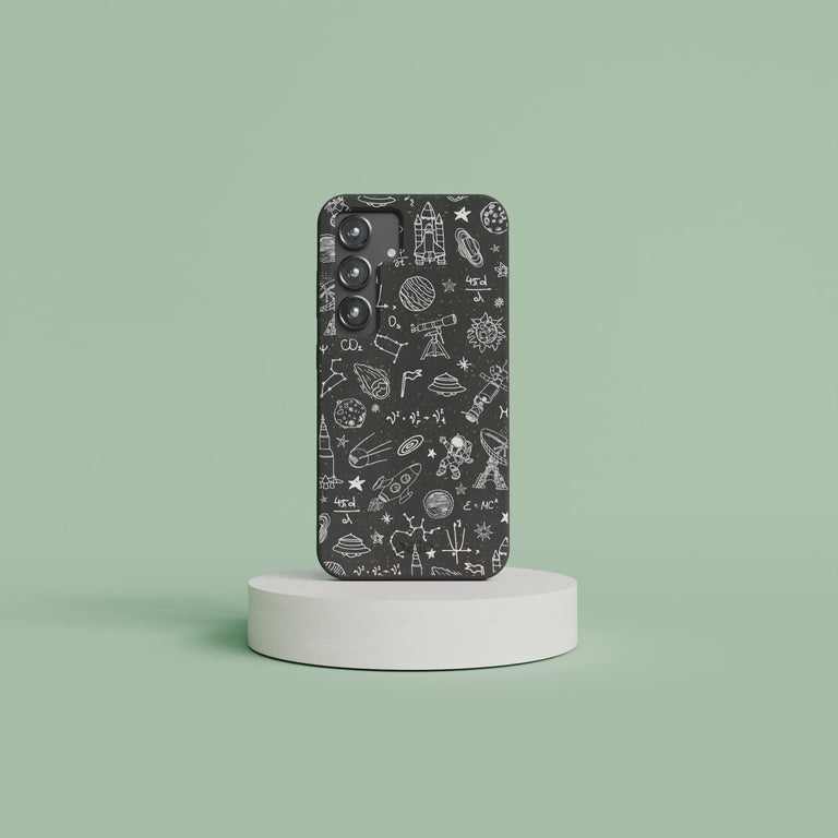 Protect your phone with our durable and compostable Black Astronomy Phone Case, featuring a unique print of comets, astronauts, UFOs, planets, and telescopes. Perfect for any astronomy lover or space enthusiast!