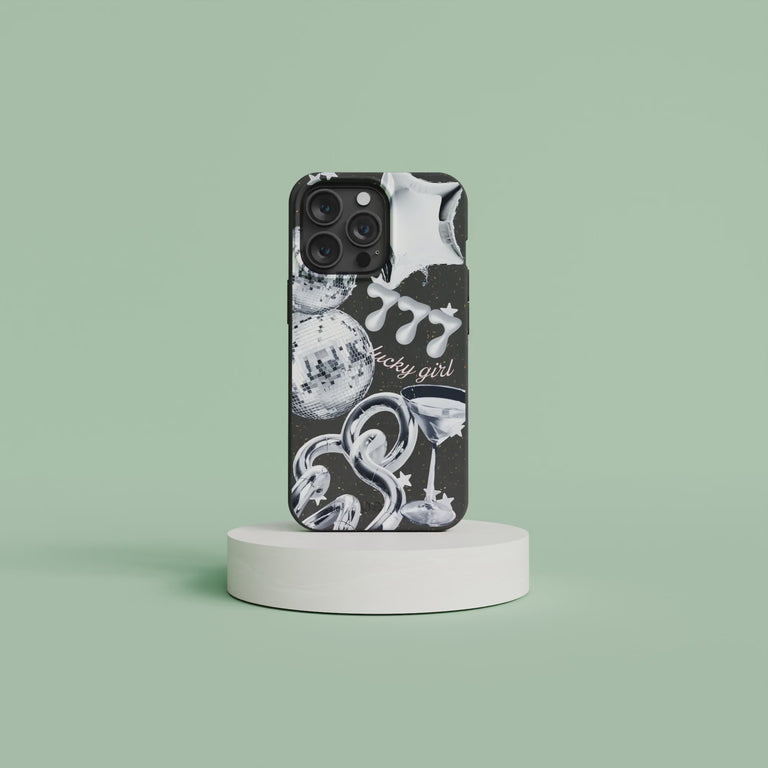 Channel your inner “lucky girl” with the Cosmic Luck Phone Case! Drenched in silver vibes with disco balls, stars, and lucky symbols, this case is a dazzling mix of cosmic charm and party-ready style. Whether you’re feeling fabulous or just looking for a sprinkle of good fortune, this design has you covered. Slip on this case, and let the universe bring a little extra sparkle your way!