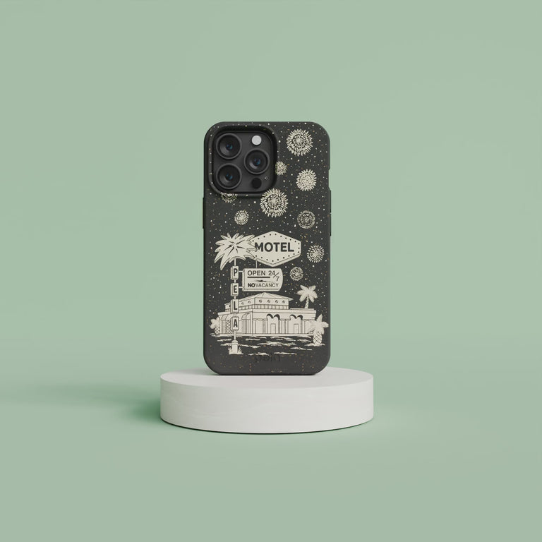✨🏨 Welcome to Motel Pela, a captivating phone case from the exclusive Pela x Cam Miller Artist Series Collection! Inspired by the nostalgic charm of vintage motels, this design features a retro signboard and a starry night sky, transporting you to a dreamy roadside escape. This case captures the essence of endless adventures and cozy stays under the stars. Perfect for wanderlust-filled souls and design enthusiasts alike, the Motel Pela Phone Case adds a touch of classic Americana to your tech gear. Check in and carry a piece of art wherever you go! 🌟📱
