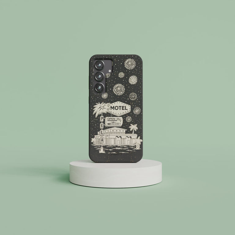 ✨🏨 Welcome to Motel Pela, a captivating phone case from the exclusive Pela x Cam Miller Artist Series Collection! Inspired by the nostalgic charm of vintage motels, this design features a retro signboard and a starry night sky, transporting you to a dreamy roadside escape. This case captures the essence of endless adventures and cozy stays under the stars. Perfect for wanderlust-filled souls and design enthusiasts alike, the Motel Pela Phone Case adds a touch of classic Americana to your tech gear. Check in and carry a piece of art wherever you go! 🌟📱