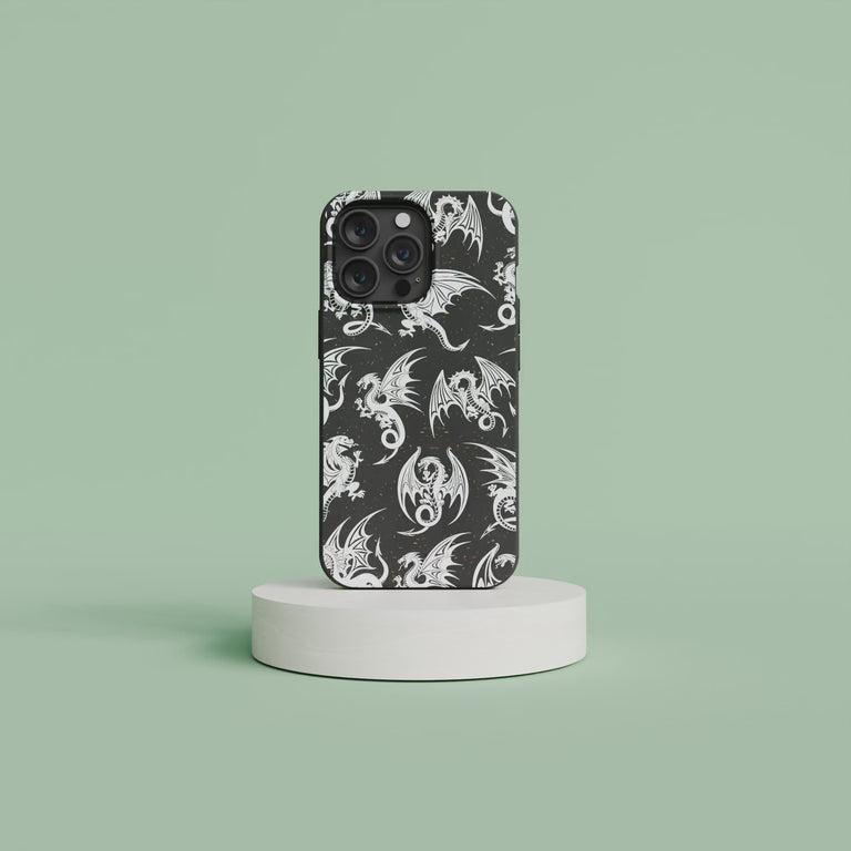 Channel the fierce and regal energy of your favorite epic fantasy with the Mythical Dragons Phone Case! Adorned with an intricate pattern of majestic white dragons set against a bold black background, this case is a must-have for any fan of legendary tales. Each dragon design captures the strength and elegance of these mythical creatures, ready to guard your phone with their fiery spirit. Embrace the magic and power of the House of Pela, and let this case be your ultimate companion in your quest for style and protection! 🐉 🌟📱