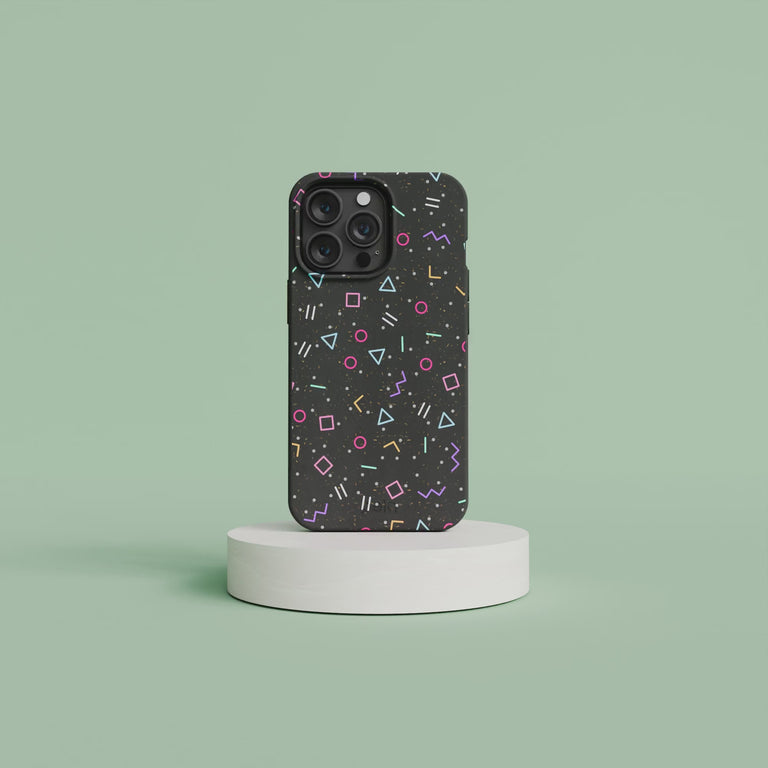 Geometric shapes and vivid colors pop with life, bringing the dynamic spirit of retro arcades and dance floors to the palm of your hand.