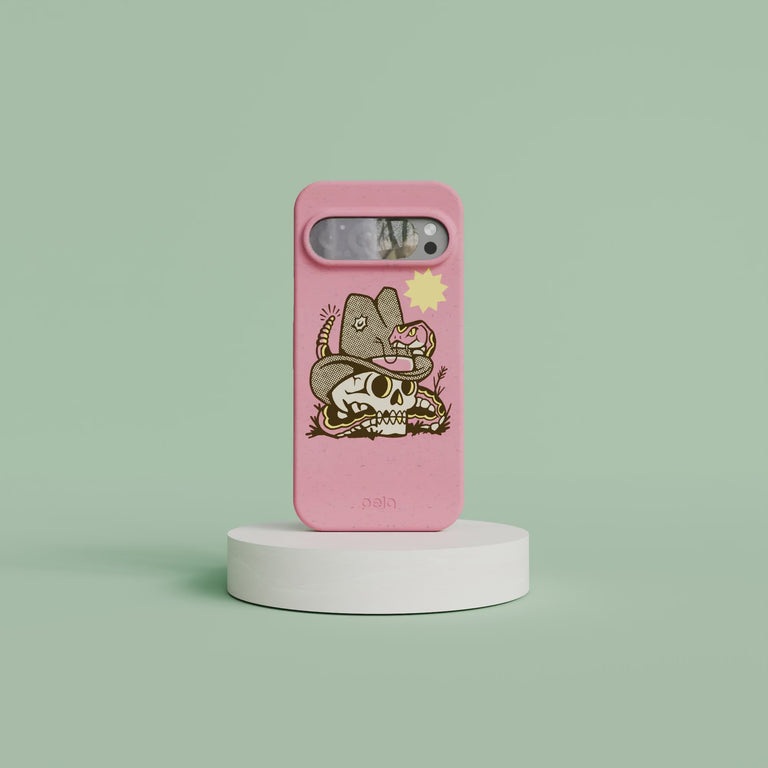 🐍💀 Embrace the wild west with the Snakebite Phone Case from the exclusive Pela x Cam Miller Artist Series Collection! Featuring a bold and edgy design of a cowboy hat-wearing skull entangled with a fierce rattlesnake, this case brings a punch of rebellious charm to your everyday adventures. The vibrant bubblegum pink background adds a playful contrast to the gritty artwork, making it a standout piece for those who dare to be different. Perfect for thrill-seekers and art lovers alike, the Snakebite case is your ultimate accessory for a fearless and stylish look. Ride into the sunset with a touch of danger and a whole lot of attitude! 🌵🐍🔆