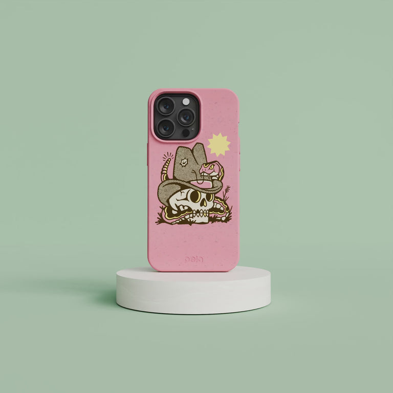 🐍💀 Embrace the wild west with the Snakebite Phone Case from the exclusive Pela x Cam Miller Artist Series Collection! Featuring a bold and edgy design of a cowboy hat-wearing skull entangled with a fierce rattlesnake, this case brings a punch of rebellious charm to your everyday adventures. The vibrant bubblegum pink background adds a playful contrast to the gritty artwork, making it a standout piece for those who dare to be different. Perfect for thrill-seekers and art lovers alike, the Snakebite case is your ultimate accessory for a fearless and stylish look. Ride into the sunset with a touch of danger and a whole lot of attitude! 🌵🐍🔆