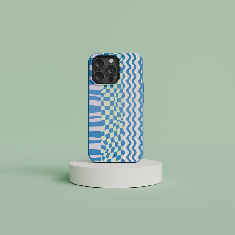 🔹🌈 Add a dash of eclectic charm to your phone with our Mixed Up Phone Case by Pela! This design is a vibrant collage of patterns, merging classic checks, sleek stripes, and wavy lines in an array of blues, greens and pinks. It's the perfect case for those who embrace a mix-and-match aesthetic and appreciate sustainability. Let your phone be an expression of your unique style with this visually captivating accessory! 🌍💖