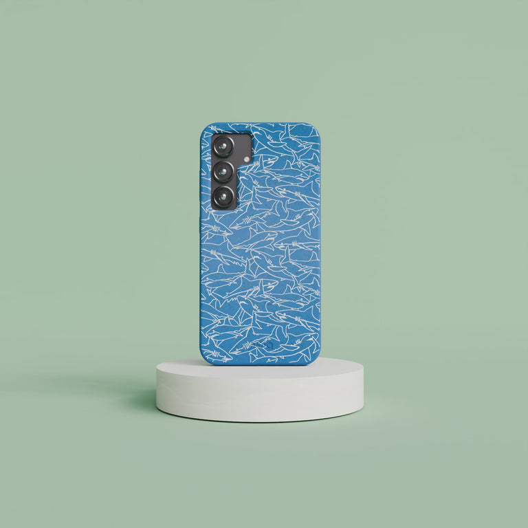 Electric Blue Shark Frenzy Samsung Galaxy S24 Case
