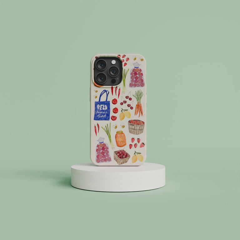Step into the vibrant world of a bustling farmer's market with the Market Finds Phone Case! This delightful design features a colorful array of fresh produce, from juicy strawberries and ripe tomatoes to crunchy carrots and sweet honey jars. Each element is hand-drawn with love, capturing the essence of a sunny morning spent picking the best local goods. Carry a piece of the farmer's market magic with you and let every glance at your phone bring a smile to your face. ๐๐๐ฝ