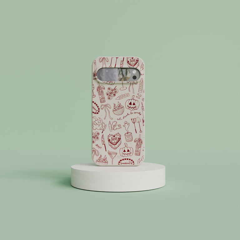 Get ready to “eat, drink, and be spooky” with the Spooky Dinner Party Phone Case! 🎃🍴 This playful design brings all the Halloween essentials to your phone, from jack-o’-lanterns to witchy brews and tasty treats! Whether you’re a fan of devilishly good snacks or just love a fun, this case is your perfect dinner party accessory. It’s a feast for the eyes (minus the ghostly guests)! 👻🎉 Keep your phone stylishly protected while you celebrate the spookiest time of the year!