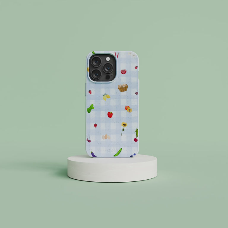 Welcome to the countryside charm of the Gingham Farmhouse Phone Case! Adorned with a delightful powder blue gingham pattern, this case features an assortment of farm-fresh favorites like vibrant veggies, juicy fruits, cheerful sunflowers, and even a cute basket of eggs. It's like carrying a piece of a sunny, bountiful farm right in your pocket! Perfect for anyone who loves a touch of farmhouse fun and fresh flair, the Gingham Farmhouse Phone Case is your new go-to accessory for a delightful day. 🌽🍓🐔