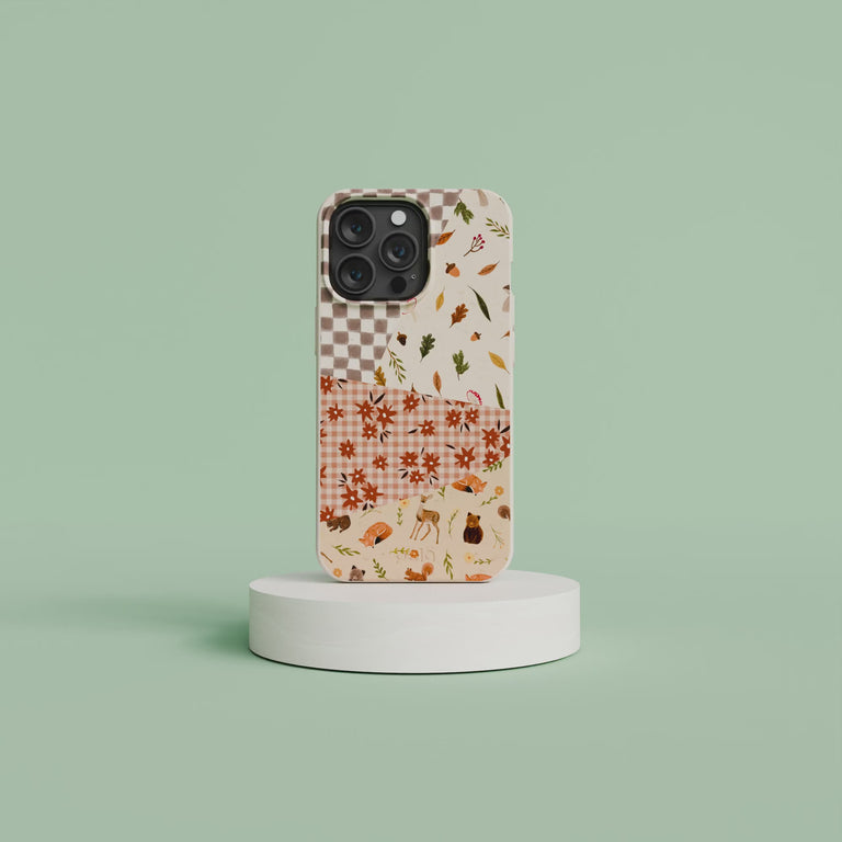 Envelope your device in the warmth of the Autumn Quilt Phone Case from our Cozy Core Collection, where the essence of fall is captured in every stitch of its design. This case blends a checkered pattern with the natural tapestry of fall, featuring crisp leaves, acorns, and the fauna of the forest. Each segment is like a patch in the quilt of autumn, telling a story of harvest and harmony. 🍂📱🧡