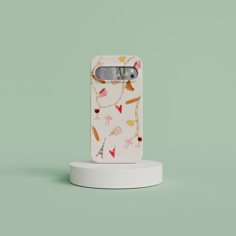 Ooh la la! Bring a little romance to your everyday with the City of Love Phone Case! Adorned with illustrations of baguettes, croissants, wine, the Eiffel Tower, and a sprinkle of hearts, that dangles like a charm on a bracelet—this case captures everything we adore about the elegance and sweetness of love. Perfect for hopeless romantics alike, this stylish design will have you falling in love with your phone all over again. 🥖💌🍷