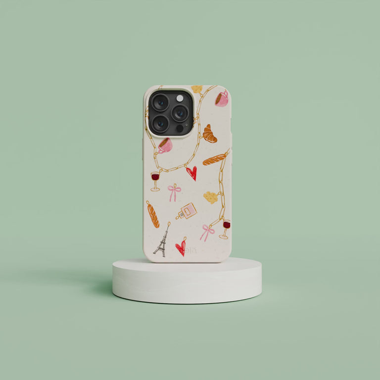 Ooh la la! Bring a little romance to your everyday with the City of Love Phone Case! Adorned with illustrations of baguettes, croissants, wine, the Eiffel Tower, and a sprinkle of hearts, that dangles like a charm on a bracelet—this case captures everything we adore about the elegance and sweetness of love. Perfect for hopeless romantics alike, this stylish design will have you falling in love with your phone all over again. 🥖💌🍷