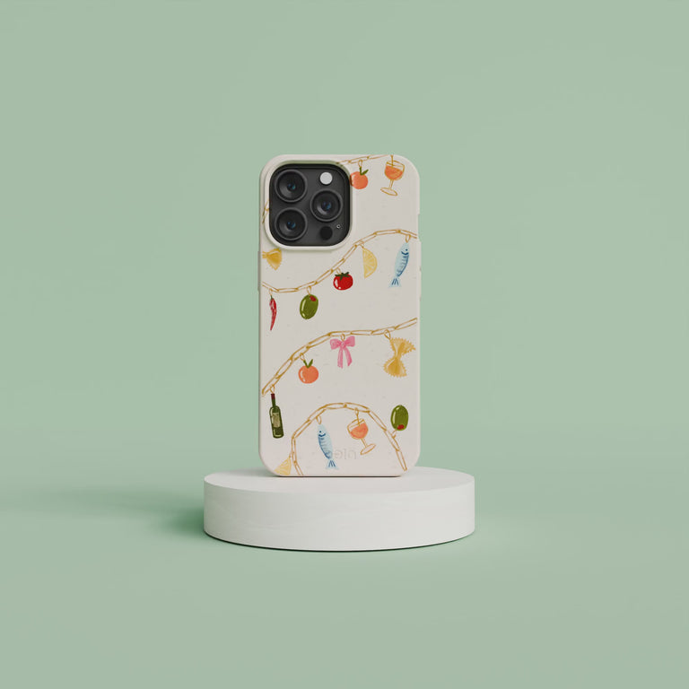 Channel the vibrant, sunny vibes of summer with the Dolce Summer Phone Case! Bursting with playful illustrations that dangle like charms on a bracelet, of fresh lemons, pasta, and olives, this delightful case is a tribute to the simple joys of summer dining and endless sunshine. With bright pops of color and fun little details like a bottle of wine and a bow, your phone will be as ready for a seaside escape as you are. It’s the perfect way to bring a little bit of la dolce vita into your everyday! 🍋 🌞🍷