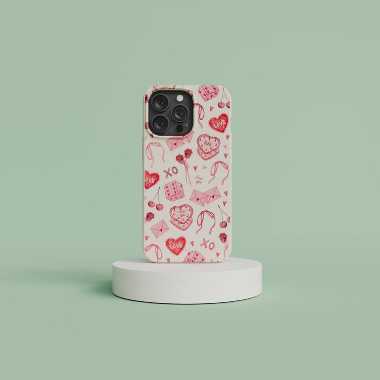 Wrap your phone in all things love with the Love Pack Phone Case from our Amour Collection! Featuring love letters, roses, cherries, and sweet heart-shaped candies, this case is bursting with Valentine’s charm and romantic vibes. 💌❤️