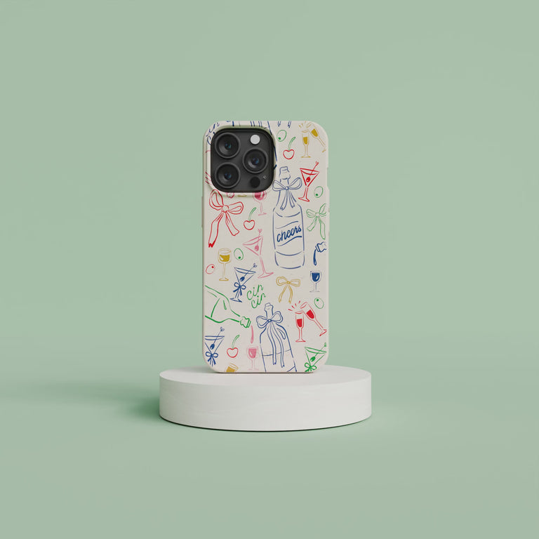Celebrate every moment with the Midnight Toast Phone Case! Bursting with colorful illustrations of bubbly bottles, glasses, cherries, and playful “cheers” and “cin cin” accents, this case brings the party straight to your phone. Perfect for those who love a splash of festivity and a sprinkle of retro charm, it’s like a midnight toast you can carry around all day. 🍾🥂