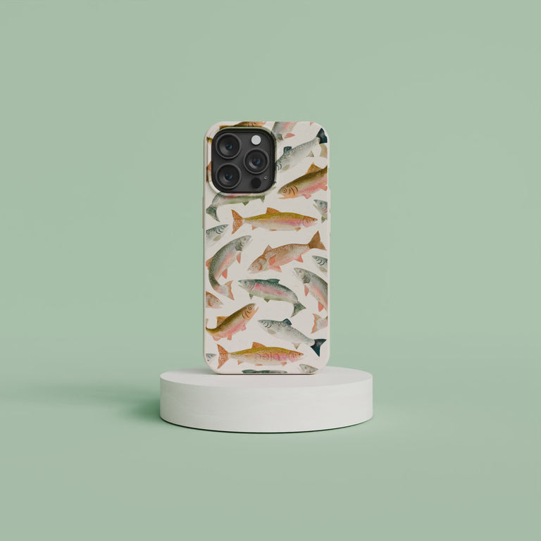 Trout lovers, this one's for you! Rainbow Trout Phone Case is packed with realistic fish illustrations, swimming across a natural-toned background for an effortlessly cool, outdoorsy look. Whether youโre knee-deep in a river or just love a good fish print, this case keeps your passion alive and your phone protected. ๐๐